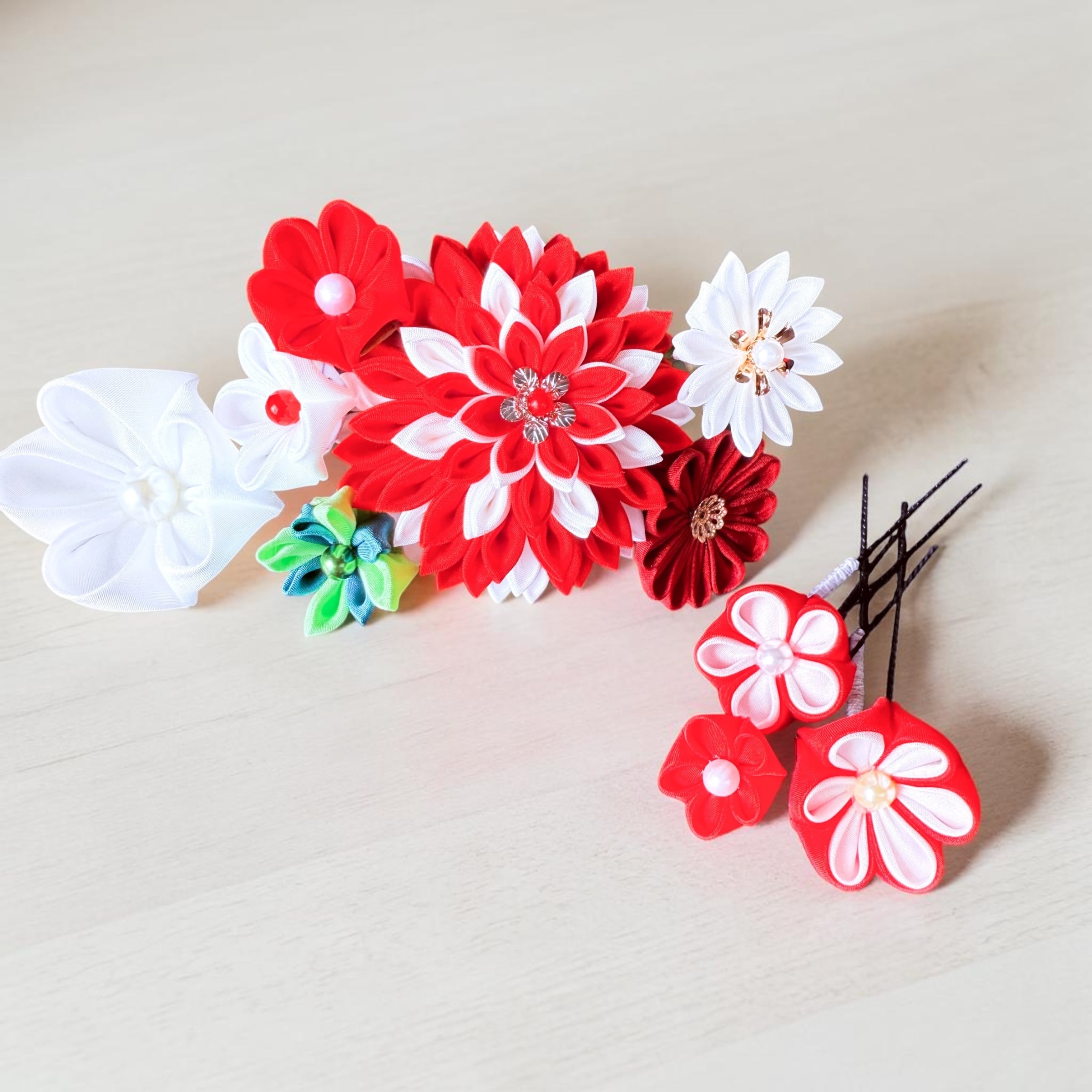 【オーダーメイド】つまみ細工の髪飾り/コサージュ